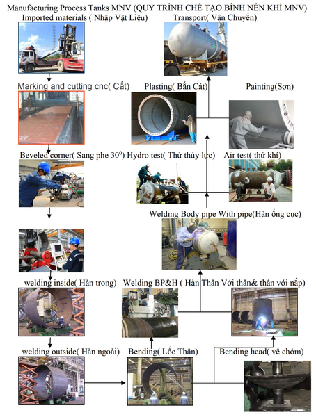 Chúng tôi thực hiện quy trình chế tạo bình nén khí theo các bước nghiêm ngặt: